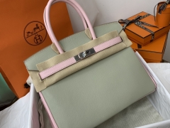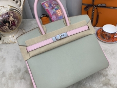 HERMES 爱马仕 birkin 30cm chevre mysore 山羊皮 80珍珠灰拼3Q粉 银扣 超美配色