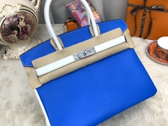 HERMES 爱马仕 birkin 30cm chevre mysore 山羊皮 7Q希腊蓝拼纯白 银扣 适合网红小姐姐 街拍更加好看 显的独一无二!
