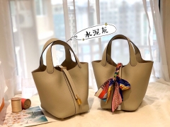 爱马仕女包价格 18菜蓝子picotin 进口TC皮 水泥灰 金银扣