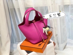 爱马仕女包价格 18菜蓝子picotin 进口TC皮 玉兰紫 金银扣