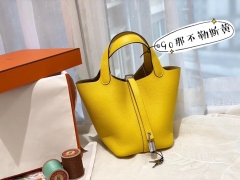 爱马仕女包价格 18菜蓝子picotin 进口TC皮 90那不勒斯黄 金银扣