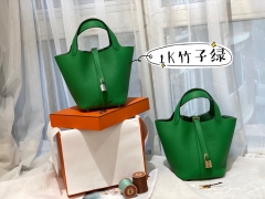 爱马仕女包价格 18菜蓝子picotin 进口TC皮 1K竹子绿 金银扣
