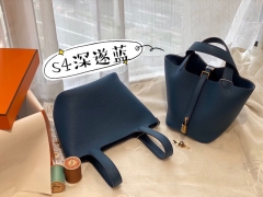 爱马仕女包价格 18菜蓝子picotin 进口TC皮 S4深邃蓝 金银扣