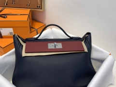 HERMES 爱马仕官网直销 订单 走秀款24/24 birkin和kelly完美结合、少了老kelly的硬朗 多了一份随性的休闲气息 togo皮质 明蓝拼黑色拼伊蓝