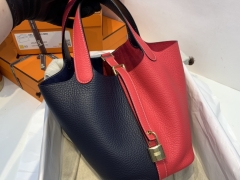 Hermes picotin 18cm 作为H家的入门款 实用款 对它感兴趣的亲们有不少 进口Tc皮 73宝石蓝拼心红 金扣 这配色好特别 挺别致的 不会烂大街