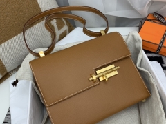 HERMES verrou 21cm 可斜跨 可肩背 好有气质的一款 原厂epsom皮 37金棕色 金扣