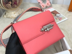 爱马仕 stock~现货 mini verrou 插销包限量款编织织带 chevre mysore山羊皮 8W唇膏粉 超pink、少女粉!