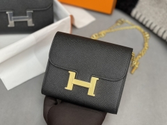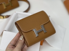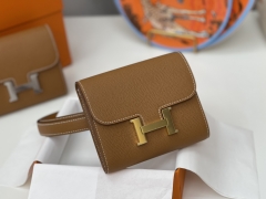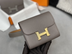 爱马仕 Constance compact 腰包 钱包背后做成了可以穿过腰带或皮带的皮搭 Epsom 37土黄 gold 金银扣