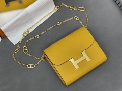 爱马仕 Constance compact 腰包 钱包背后做成了可以穿过腰带或皮带的皮搭 Epsom 9D琥珀黄Jaune Amber 金银扣