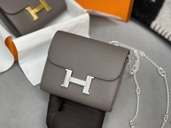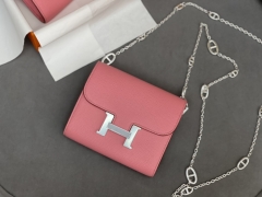 爱马仕 Constance compact 腰包 钱包背后做成了可以穿过腰带或皮带的皮搭 Epsom 1Q 奶昔粉 Rose Confetti 银扣 正品开版
