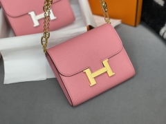 爱马仕 Constance compact 腰包 钱包背后做成了可以穿过腰带或皮带的皮搭 Epsom 1Q 奶昔粉 Rose Confetti 金银扣 正品开版