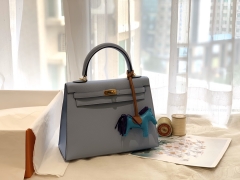 香港爱马仕官网 现货 25kelly epsom BB蓝 金扣