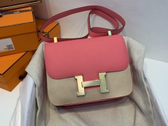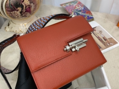 爱马仕 stock~现货 mini verrou 插销包限量款编织织带 chevre mysore山羊皮 8W唇膏粉 超pink、少女粉!