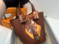 HERMES 爱马仕官网直销 现货 picotin 菜蓝子 Clemence 皮 6C 古铜色 金扣