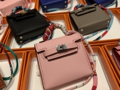 爱马仕 stock~现货 mini verrou 插销包限量款编织织带 chevre mysore山羊皮 8W唇膏粉 超pink、少女粉!