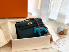 爱马仕 epsom 皮 60 松柏绿金扣 22 Kelly pochette/一代 手包晚宴包/配上猪鼻子链可当小挎包哦