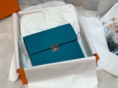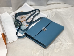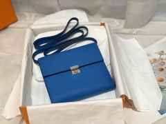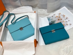 爱马仕 20 toolbox 牛奶盒 工具盒 一款中性有趣的包 中间采用轻便的金属旋转设计 无需拉链 简单方便 巨能装 swift R2 玛瑙蓝 银扣