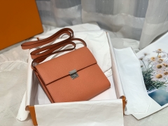爱马仕 20 toolbox 牛奶盒 工具盒 一款中性有趣的包 中间采用轻便的金属旋转设计 无需拉链 简单方便 巨能装 ever color 皮 金棕 银扣