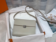 爱马仕 20 toolbox 牛奶盒 工具盒 一款中性有趣的包 中间采用轻便的金属旋转设计 无需拉链 简单方便 巨能装 ever color 皮 CC10 奶昔白 银扣