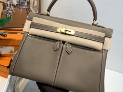 HERMES 爱马仕 Kelly lakis Swift 皮 18 大象灰 前面两个口袋,后面一个大口袋,赋予了kelly 不一样的生命力