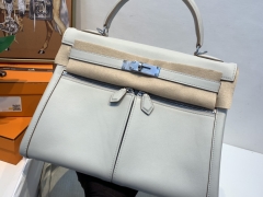 HERMES 爱马仕 Kelly lakis Swift 皮 80 珍珠灰 前面两个口袋,后面一个大口袋,赋予了kelly 不一样的生命力