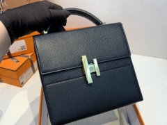 HERMES 爱马仕官网直销 订单 走秀款24/24 birkin和kelly完美结合、少了老kelly的硬朗 多了一份随性的休闲气息 togo皮质 明蓝拼黑色拼伊蓝