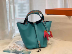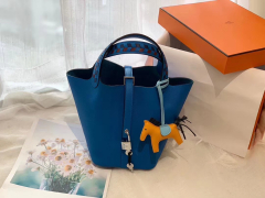 HERMES picotin lock 菜篮子 18 限量版编织拼接手柄 蜡线缝制 Epsom P3北方蓝