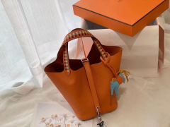 爱马仕 picotin lock 菜篮子 18 限量版编织拼接手柄 蜡线缝制 Epsom 93经典橙色
