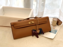 Hermes kelly cut 31cm 晚宴气质手拿包 非常干练又时髦 swift皮 37-金棕 金扣