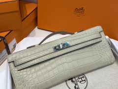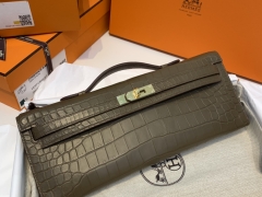 HERMES kelly cut 晚宴气质手拿包 绝对的贵妇必备! 哑光Alligator crocodile 美洲鳄鱼 M1 新大象灰 金扣