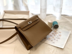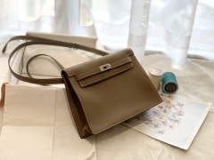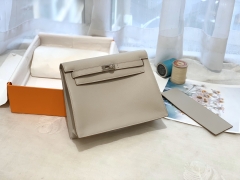 爱马仕女包批发 新到现货 Kelly Danse 小肩包 一包多用法 evercolor皮 风衣灰