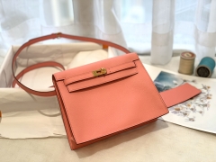 爱马仕女包批发 新到现货 Kelly Danse 小肩包 一包多用法 evercolor皮 龙虾粉
