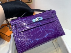 HERMES 爱马仕 Kelly pochette 亮面Alligator 美洲 鳄鱼皮 9W 梦幻紫 银扣 拥有这款神仙包包_ 晚宴你一定会是艳压全场的那个