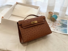 爱马仕香港官网 Mini Kelly 一代手包 南非鸵鸟 6C 古铜色 金扣