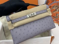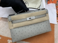 Hermes 22 Kelly pochette一代 稀有鸵鸟皮 手包晚宴包的首选,高级范 配上猪鼻子链子秒变小挎包哦 4Z 海鸥灰 秋冬最好搭配的灰色系