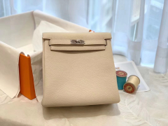 HERMES 进口 tc皮 10奶昔白 银扣 蜡线手缝 20Kelly Ado是Kelly系列延伸设计的小书包 男女通用款