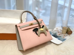 爱马仕女包 25Kelly epsom皮 玫瑰木粉 金银扣