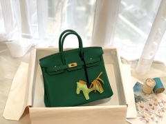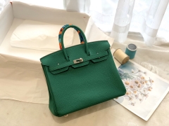 爱马仕女包渠道货 25birkin 小牛togo皮 U4 丝绒绿 金银扣