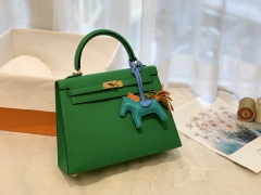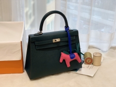 爱马仕中国官网 现货 25Kelly epsom皮 60 松柏绿 金银扣