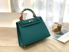 爱马仕中国官网 现货 25Kelly epsom皮 Z6 孔雀绿 金扣