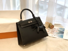 爱马仕女包批发 限量款miss you Kelly 黑白线?无人能抗拒的魅力 最新的monsieur皮 89 黑色 银扣