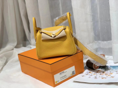 爱马仕 mini Lindy 超高颜值 上身好看又百搭 进口TC皮 9D 琥珀黄 金扣 出街最亮眼的颜色 夏天用这个颜色太适合不过了