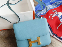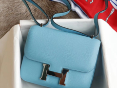 爱马仕 现货 P3北方蓝 Constance19CM 空姐包 原厂专柜Epsom皮 银扣 纯手工手缝工艺制作