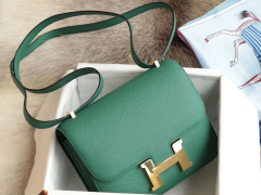 爱马仕 现货 U4丝绒绿 Constance19CM 空姐包 原厂专柜Epsom皮 金扣 纯手工手缝工艺制作