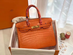 HERMES birkin 30 matte雾面 nilo crocodile尼罗鳄两点 9J火焰橙 金扣 顶级老工匠纯手缝缝制 时尚艳丽橙