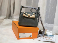 爱马仕 mini Lindy 超高颜值 上身好看又百搭 进口TC皮 63杏绿色 这个颜色高贵又优雅