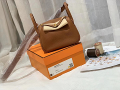 爱马仕 mini Lindy 超高颜值 上身好看又百搭 进口TC皮 ck37 土黄 金扣 三大金刚色之一