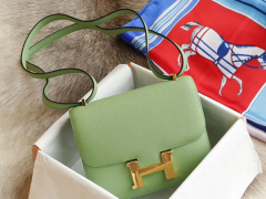 HERMES 现货 CC63杏仁绿 Constance19CM 空姐包 专柜原厂Epsom皮 金扣 纯手工手缝工艺制作 专柜最新热卖颜色