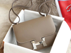HERMES 现货 S2风衣灰 Constance19CM 空姐包 专柜原厂Epsom皮 银扣 纯手工手缝工艺制作 经典热卖百搭款