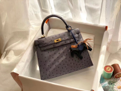 爱马仕 Kelly25 南非鸵鸟皮 Ostrich 81 玛瑙灰 金扣 蜡线全手工 鸵鸟皮越用越有光泽